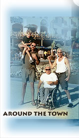Squid Roe became our favorite dance spot , and we were highly visible. On more than one occasion people recognized us in the streets the next day and shouted, "Hey, it's the Squid Roe Dancers!" Ed the dancing giant, Duncan dancing wheelies and spins in his wheelchair, Pete "The Robe" in Dick's multi-colored bathrobe, Zoro hat and sunglasses. And then John doing, hand stands and spinning beer glasses.