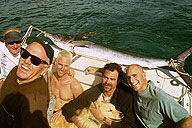 Cabo is world famous for it's fishing, and we were not to be disappointed. Ed, Pete, Brent, Duncan, Gil and Tony caught marlins. John hooked up and fought an absolute monster marlin that got away. Matthew, Brent and Elias caught Dorado (Mahi Mahi), and Jacob caught a big fish too. All the fish fought like heroes, especially the high-flying marlins. Some were thrown back, some were given to the fishermen to eat. We ate the dorados, and man were they delicious. Check out the photos of Ed and Ward with giant tuna from their first Cabo trip. Note: Click on any image to see a larger version, then just use the "Back" button to return to this page.